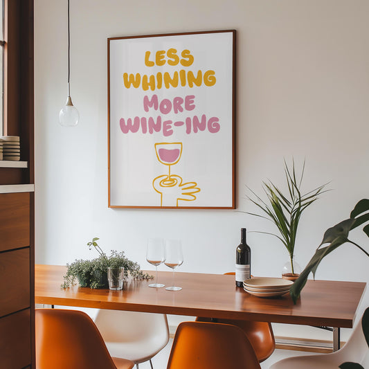 Customizable Less Whining More Wine-ing | Art Print Poster ONLY | kitchen Art | Wall Decor | Funny Adult Poster