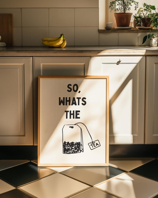 Regular price From $29.00 NZDRegular priceUnit price / perSale price From $29.00 NZDCustomizable So, Whats the tea | Art Print Poster ONLY | Hallway Art | Funny Welcome Wall Decor | Kitchen Art Print
