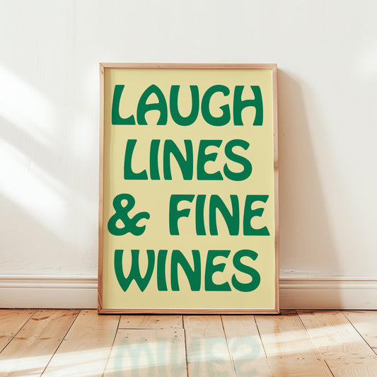 Customizable Laugh Lines and Fine Wines | Art Print Poster ONLY | kitchen Art | Dining Room Decor | Funny Wine Poster