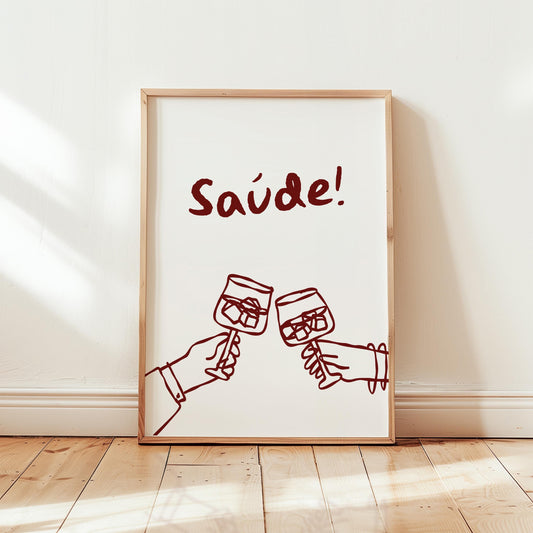Customizable Saúde! Portuguese Brazilian Wine Art Print Poster ONLY, Kitchen Wine Wall Art, Decor for Wine Lovers, Hand drawn doodle poster